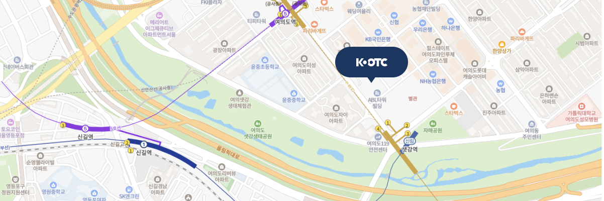 샛강역 1번출구 → 100m → ABL타워 옆 금투센터 건물